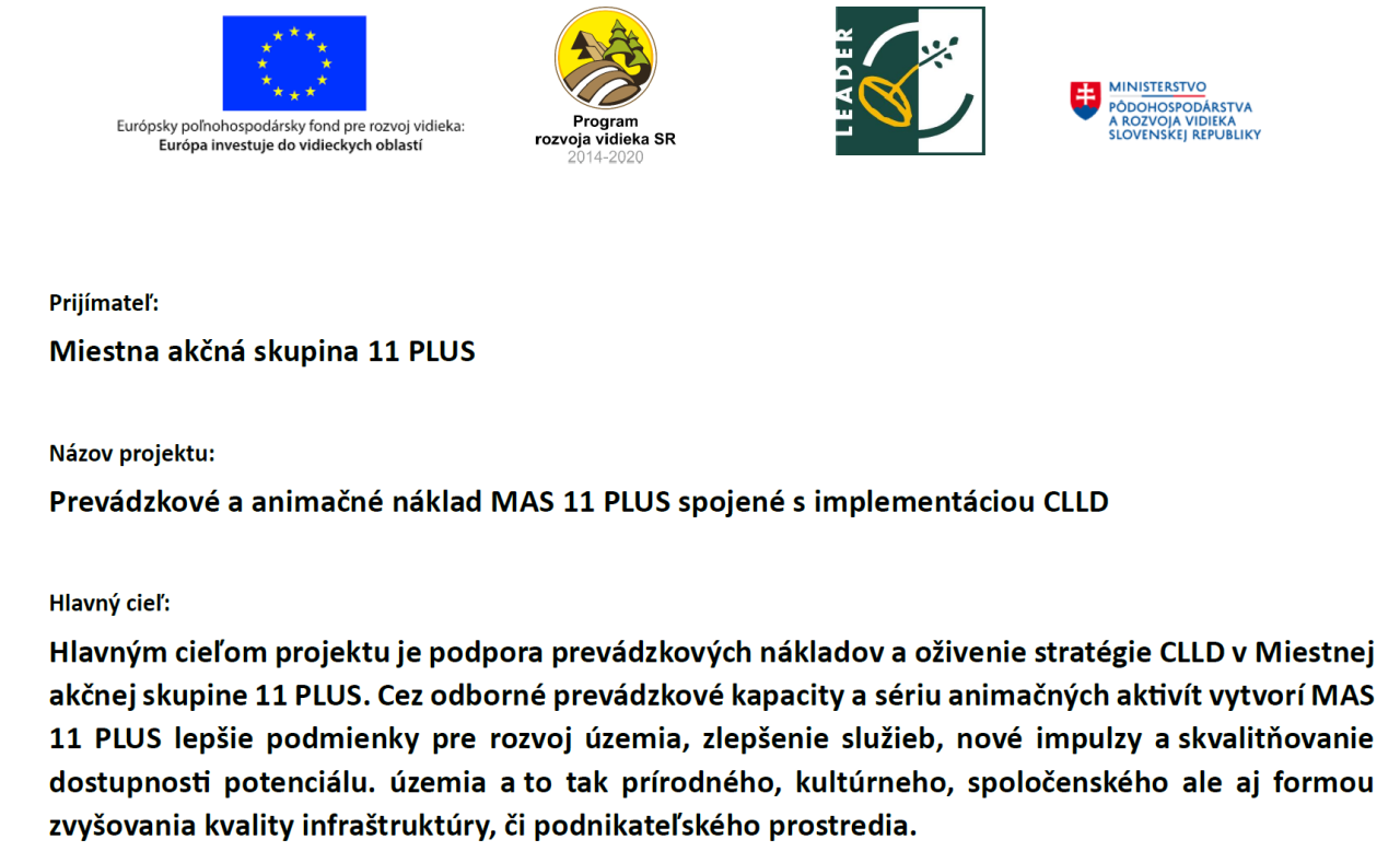 Miestna akčná skupina vytvorila príležitosť pre 2 informačné animačné aktivity, ktoré zorganizovala na podporu starostov z územia MAS 11 PLUS a ďalších členov MAS 11 PLUS zo súkromného sektora s cieľom zefektívniť čerpanie zdrojov.