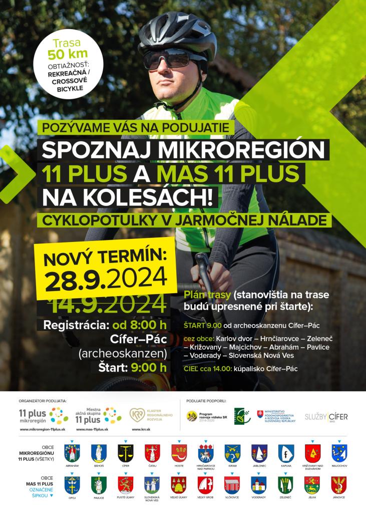 Čaká nás okruh v severnej časti nášho mikroregiónu a mas. Začíname v Cíferi, smer Karlov Dvor, potom Hrnčiarovce nad Parnou, Zeleneč, Majcichov, Abrahám, Pavlice a cez Voderady a Slovenskú Novú Ves na cieľovú destináciu v Cíferi.