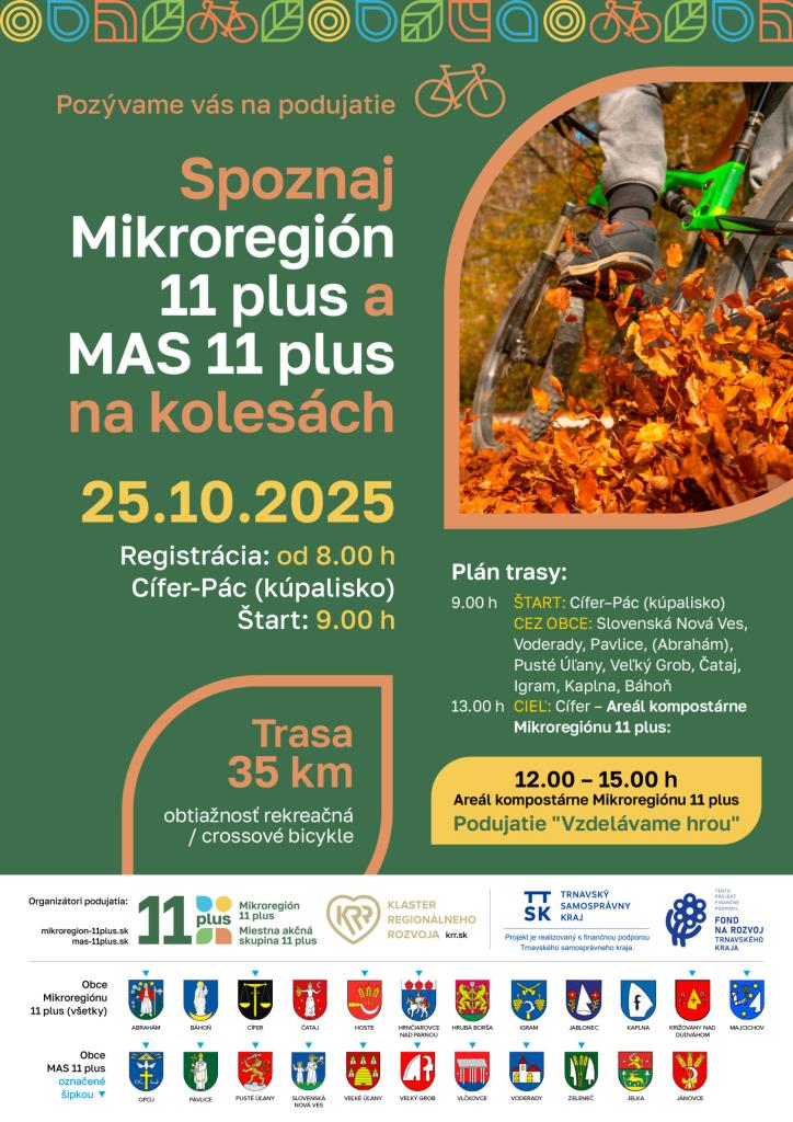 Podujatie už netreba predstavovať. Je to niekoľkoročný tradičný formát pre spozanávanie zaujímavostí nášho územia. Navštívime stanovištia v niektorých obciach, občerstvíme sa po trase aj na konci trasy. Končíme v Areály pre spracovanie BRKO v Cíferi, kde sa zapojíme do ďalšieho podujatia VZDELÁVAME HROU a dozvieme sa niečo o správnom triedení a následnom zhodnocovaní odpadu.